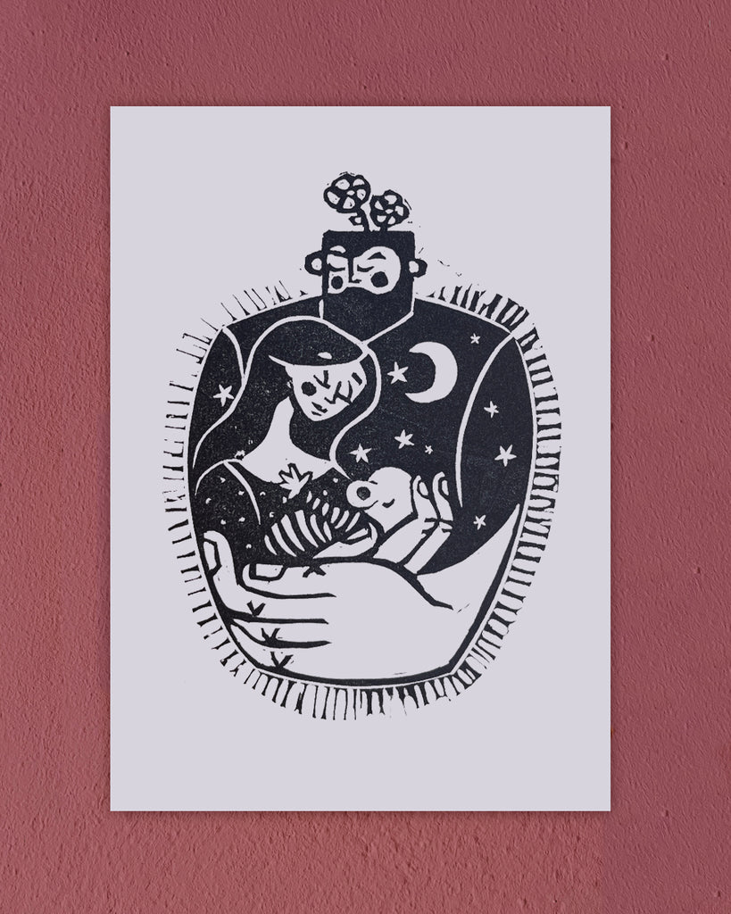 Un Vaso D'Amore II / Stampa Linocut Print / A5